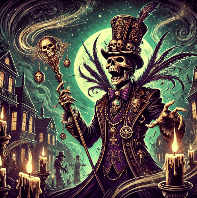 Gospodarzem tej nieco przerażającej uroczystości jest Baron Saturday, voodoo lord umarłych. Baron jest oszustem, który służy zarówno jako pomocnik, jak i oszust, i znany jest ze swojego figlarnego, czasem mrocznego poczucia humoru. Przeraża i fascynuje gości swoim charakterystycznym cylindrem, twarzą czaszki i czarnym smokingiem.